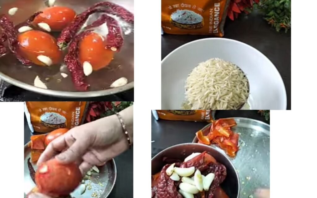 Method: Once the tomatoes are boiled and cooled, peel them and grind them with garlic and chillies into a smooth paste (without adding extra water).