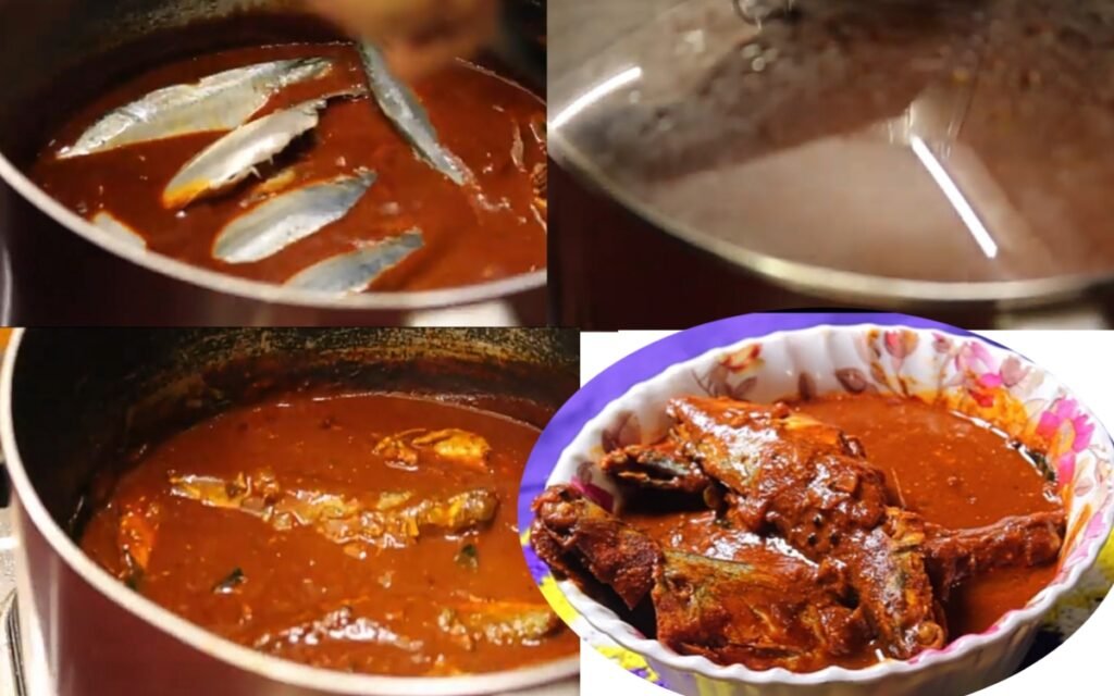 Once the gravy is bubbling, gently place the cleaned whole mackerels into the pan.