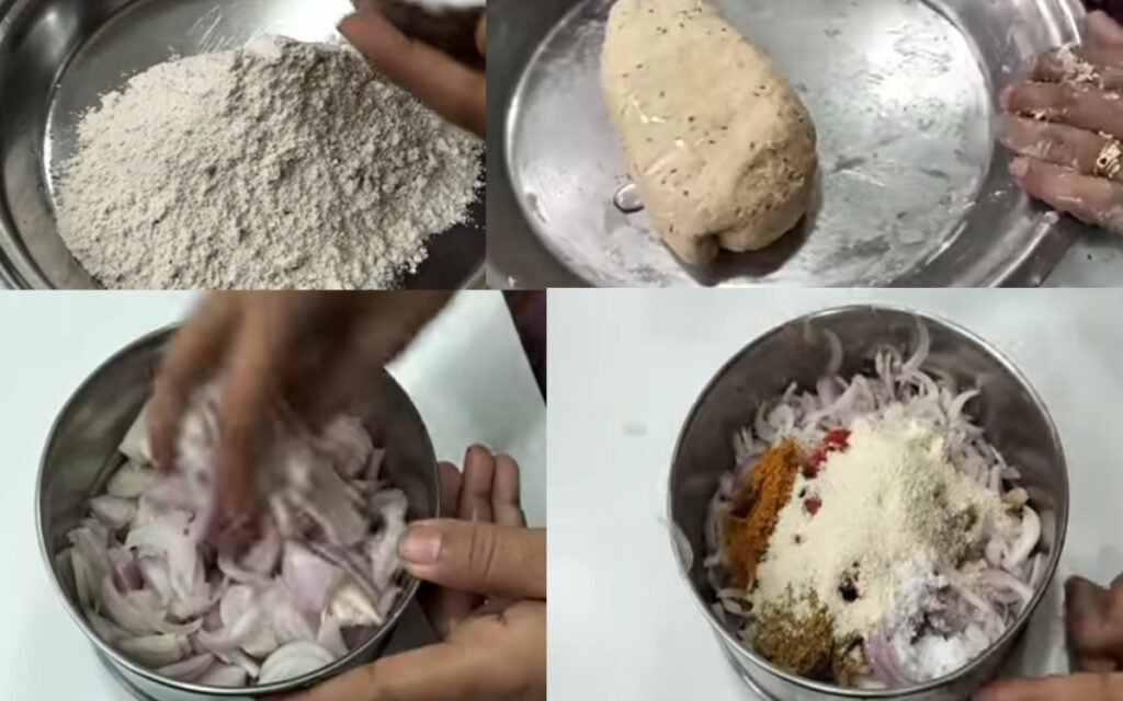 Bombay Rava (Semolina): 2-3 tablespoons (helps absorb moisture from onions)