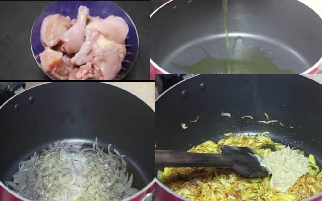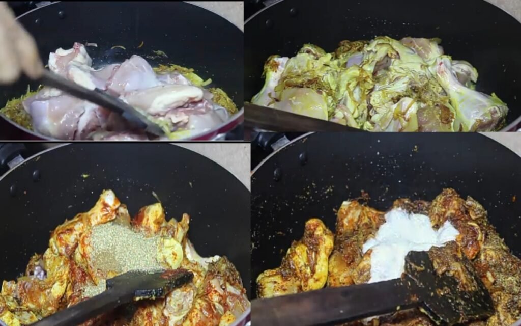 In a large bowl, mix the chicken with curd, ginger-garlic paste, turmeric, chili powder, biryani masala, salt, and lemon juice.