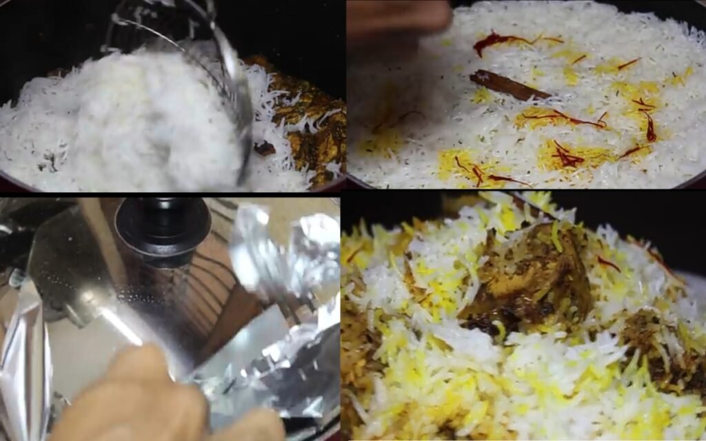 Gently fluff the biryani from the sides to keep the long grains of rice intact.