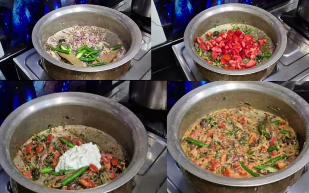 Aromatics: Cumin seeds, fennel seeds (Somp), sliced onions, crushed ginger-garlic (freshly crushed for better flavor), and slit green chilies.
