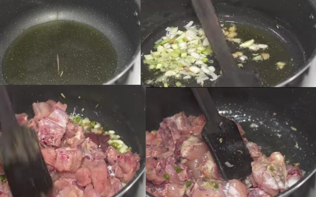Heat oil in a pan. Add finely chopped garlic and ginger; sauté until fragrant.