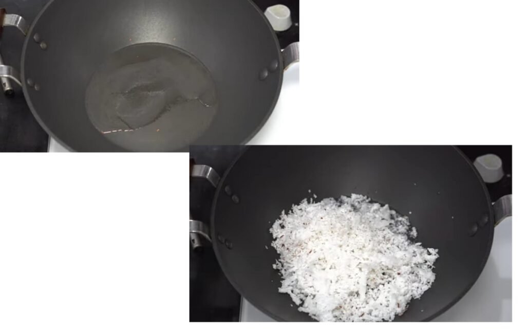 Coconut Preparation: Briefly roast the grated coconut until it turns slightly golden/brown, then keep it aside.