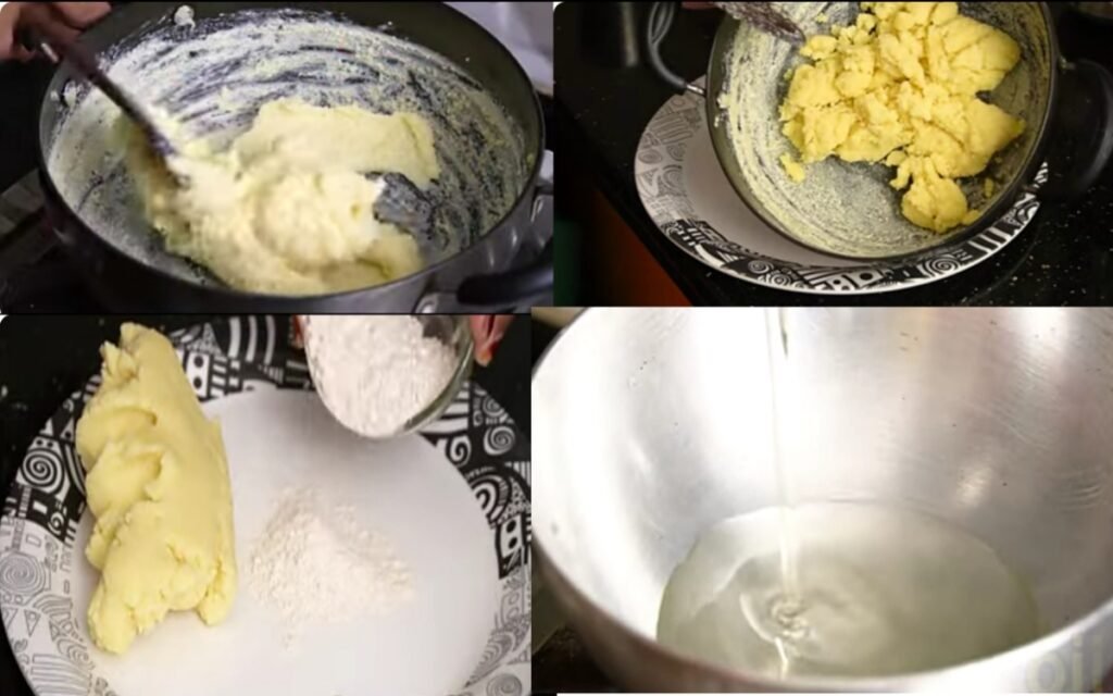 Continuously stir for about 4-5 minutes until the mixture thickens and starts leaving the sides of the pan. Once it forms a soft dough-like consistency, let it cool completely.