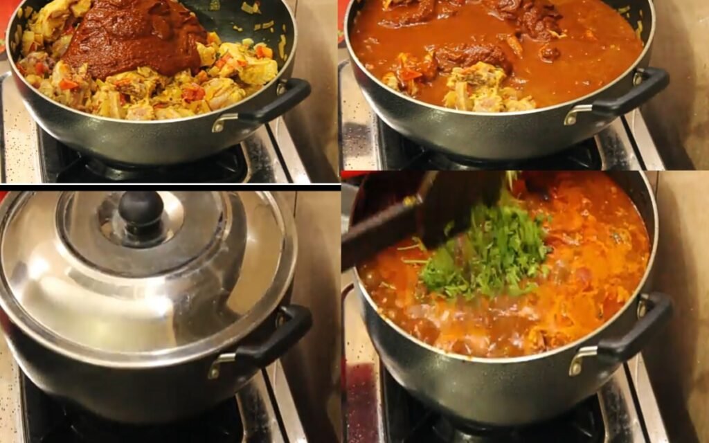 Cover the pan and cook on medium heat until the chicken is tender and the gravy thickens to your desired consistency (traditionally it is kept quite dry).