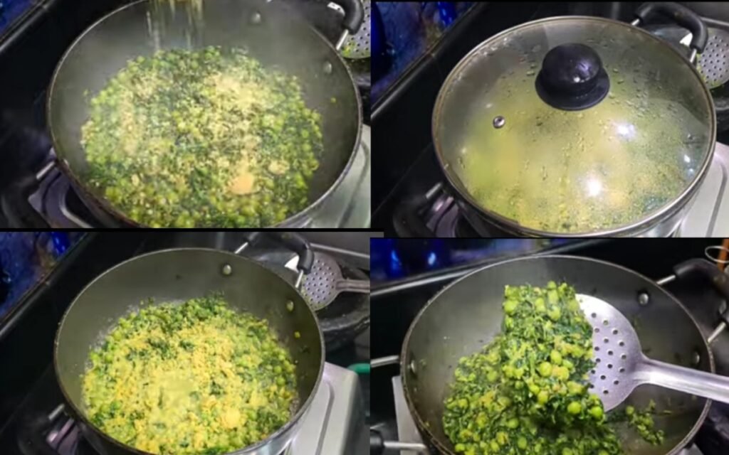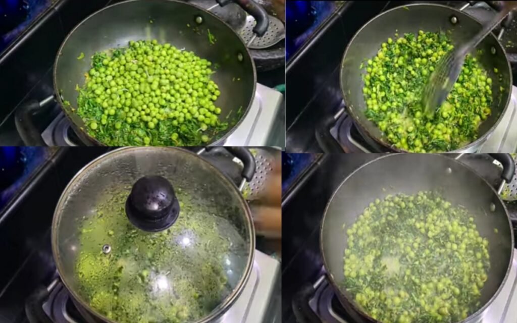 Add the boiled green peas and salt. Mix well.