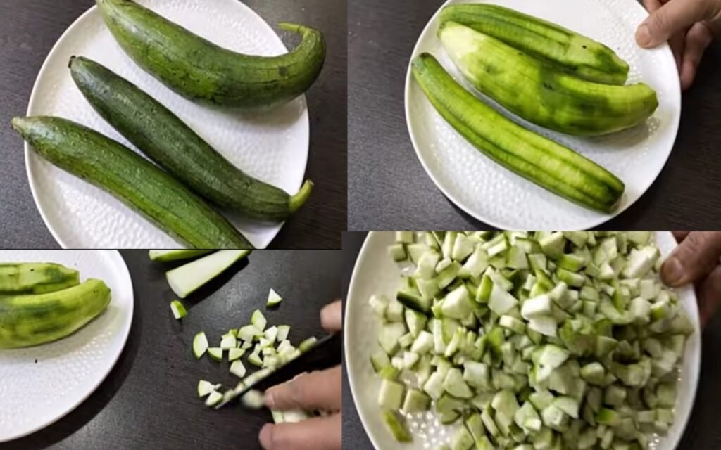 Preparation : Wash the ridge gourd, peel the skin using a peeler, and cut it into small pieces.