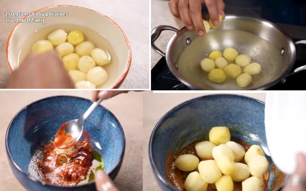 Marinate: Add the boiled potatoes to the marinade and coat them thoroughly. Let them rest for 30-40 minutes.