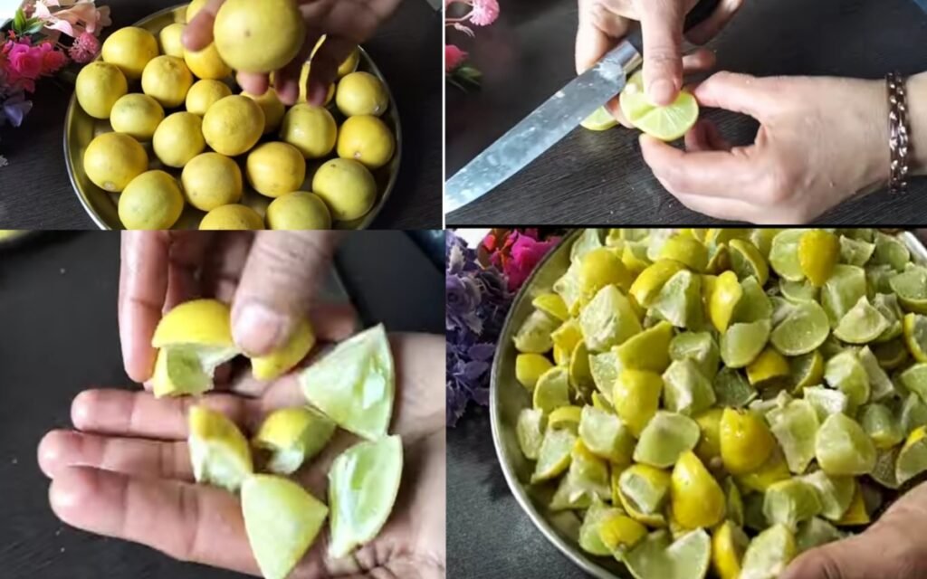 Cutting: Cut each lemon into approximately 8 pieces.