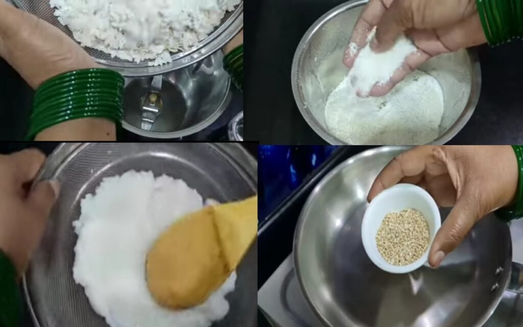 Coarsely grind 1 cup of poha in a mixer. It should not be a fine powder; it should remain slightly grainy.
