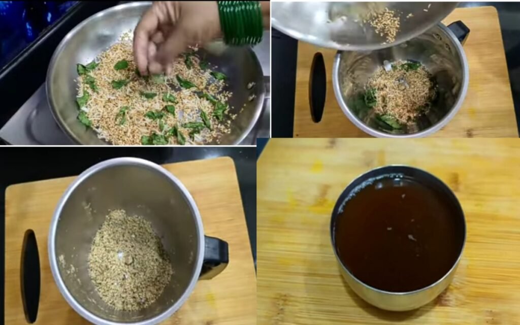 Once cooled, grind these roasted ingredients into a powder.