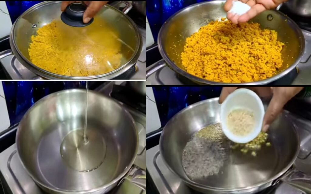 Turn off the heat, cover with a lid, and let it cool completely. Once cooled, it will become grainy and fluffy.