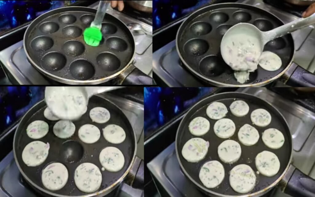 Prepare the Paddu Pan : Grease the Paddu (Appam) pan with oil and heat it over a medium flame.